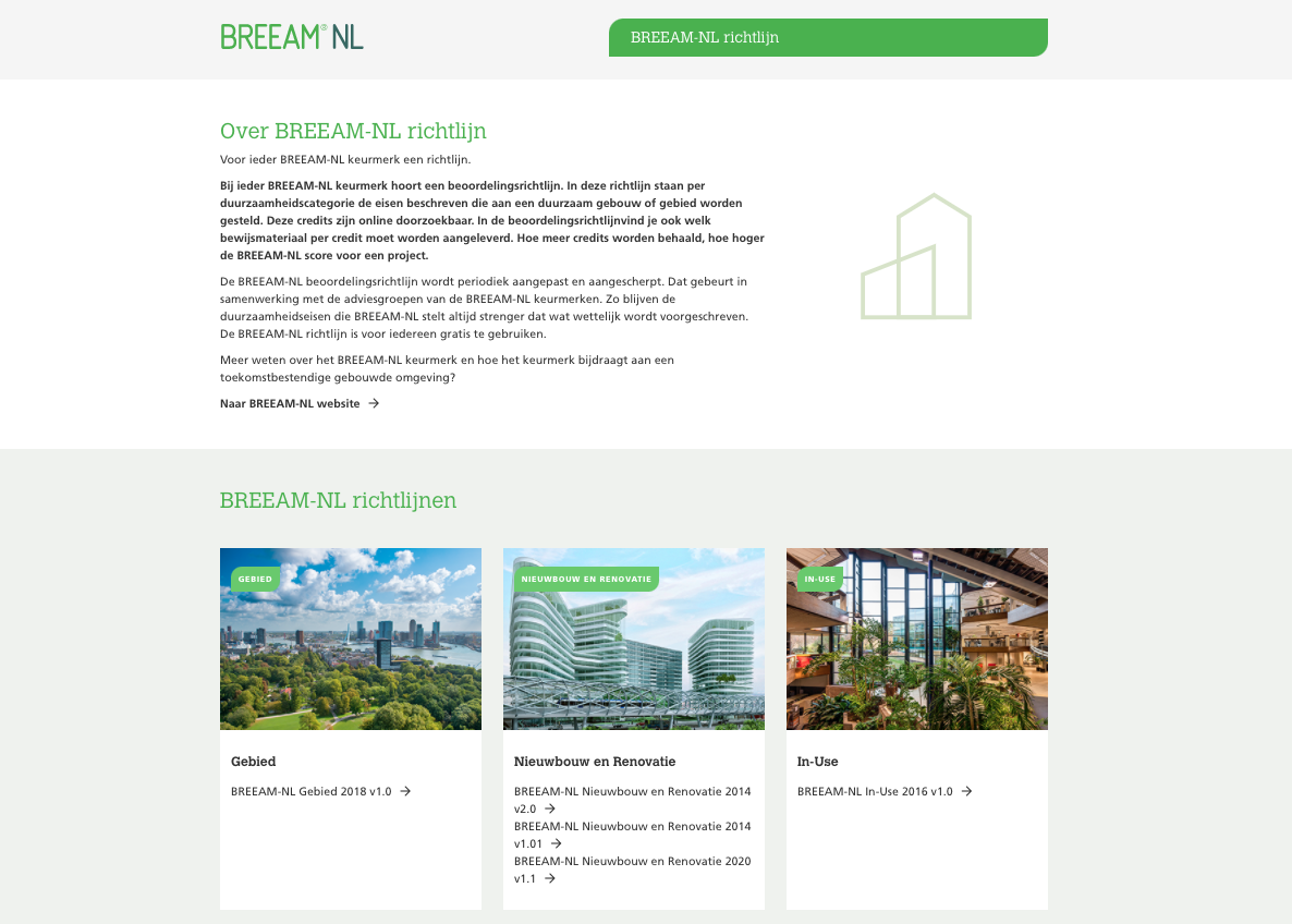 De beoordelingsrichtlijnen en credits van alle BREEAM-NL keurmerken op een rij.